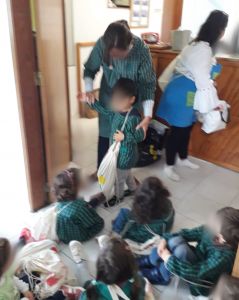 Devido ao estado do tempo, os nossos alunos não puderam fazer o percurso no exterior pedindo assim Pão por Deus no interior da instituição.