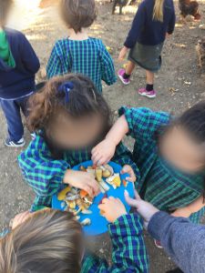 - Devemos ter uma alimentação variada e equilibrada. Para melhor compreender esta pirâmide recortámos vários alimentos para realizar a nossa pirâmide e explorámos os sabores de vários frutos. No fim, fizemos a nossa própria espetada de frutas e as sobras fomos oferecer aos animais da quintinha. Conversámos muito e chegámos à conclusão que podemos e devemos aproveitar as frutas mais maduras para comer, fazer um sumo, um batido ou, neste caso, uma espetada! Mham mham!